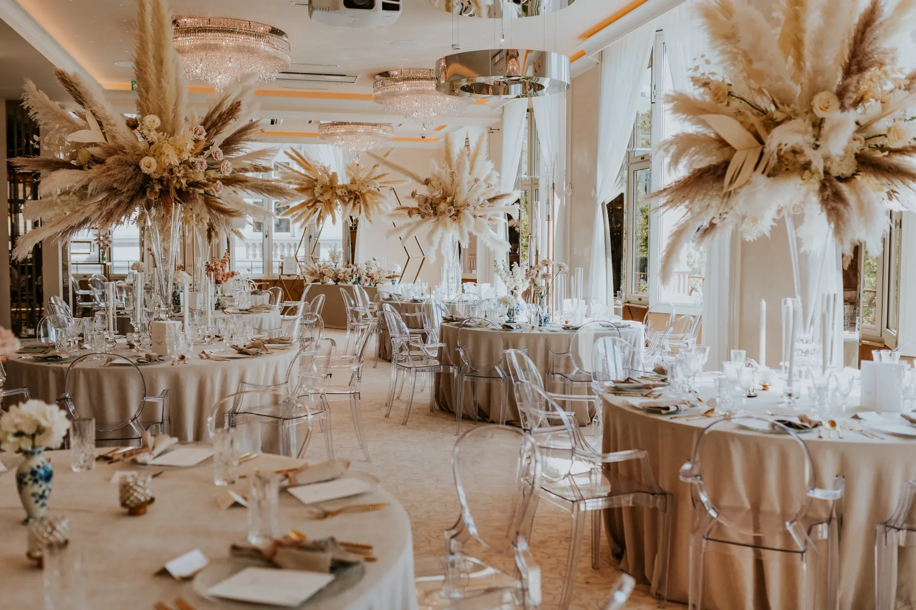 Wnętrze Crystal Palace zachwyca stylowym wystrojem, kryształowymi żyrandolami oraz elementami wystroju, które nadają każdemu wydarzeniu wyjątkowy charakter.